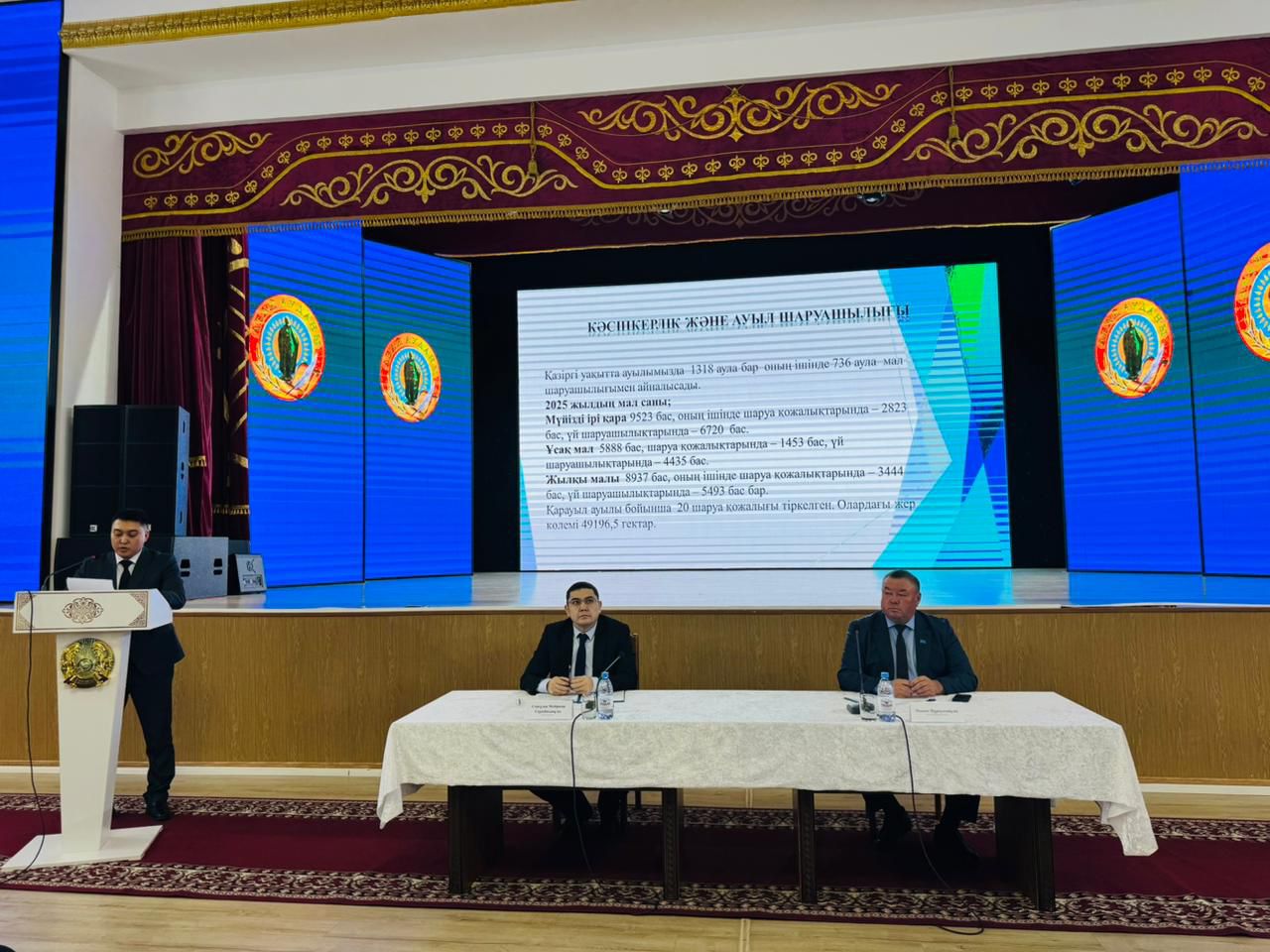 Жиында Қарауыл ауылының әкімі Е.Дүйсембеков есептік баяндамасын ұсынды. Аудан басшысы ауылдағы жүзеге асқан жобалар мен алдағы жоспарлар туралы айтты.