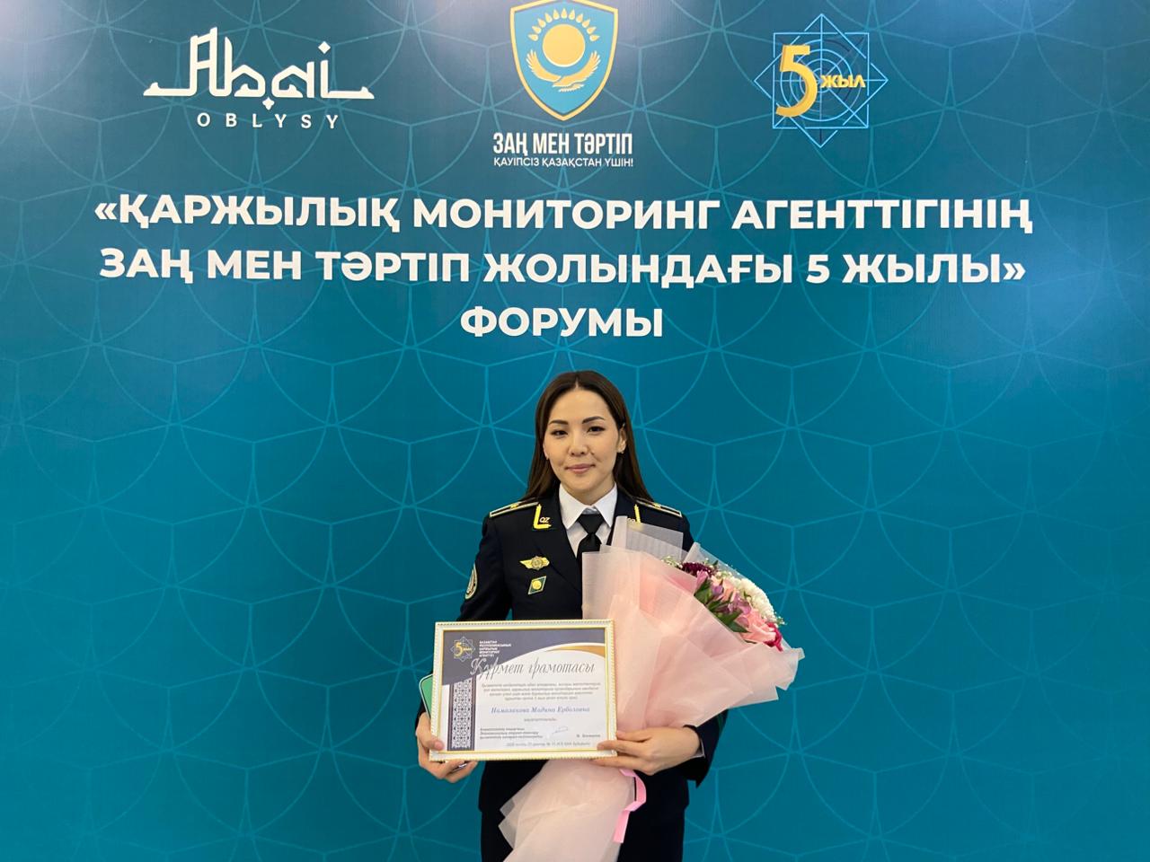 Бүгін Абай облысы бойынша Қаржылық мониторинг агенттігінің құрылғанына 5 жыл толуына орай салтанатты жиын өтті. Іс-шара барысында департамент мамандары мен серіктестері арнайы марапатқа ие болды. Солардың қатарында Абай облысы бойынша аса маңызды істер жөніндегі жедел уәкілі Мадина Намазакова да бар.